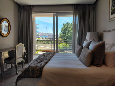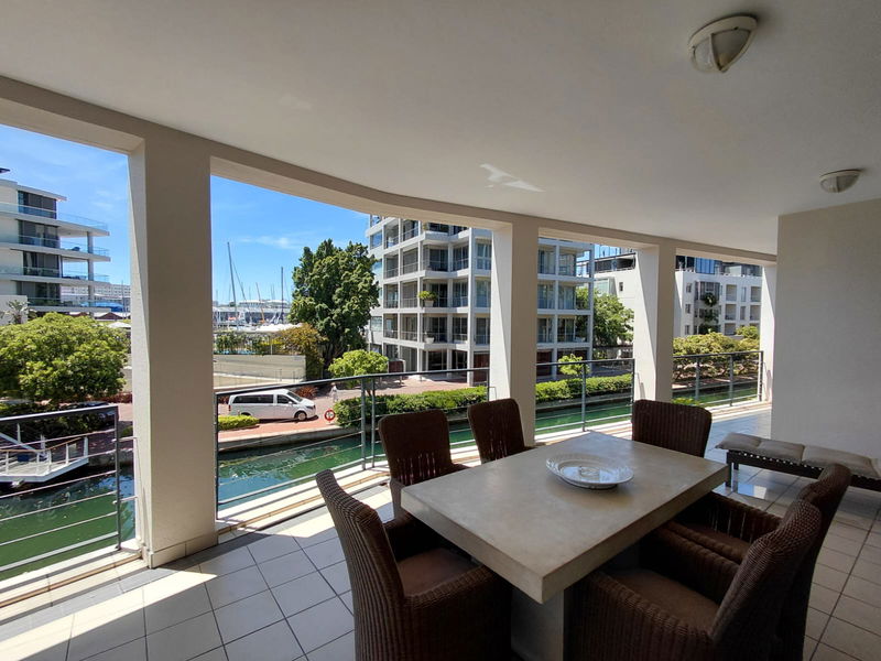 The balcony is lovely and large and has expansive views down both ways of the marine waterways, as well as a view through to the yacht basin and beyond.